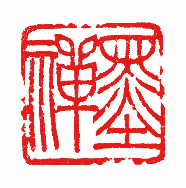 印 文:墨禅 寸 法:4×4(cm、印面) 制作年:2023年 素 材:蓮蛙鈕付ラオス石 鳥蟲篆を用いた朱文の成語印です。 「荷心香(かしんかんばし)」は、泥中から芽を出して美しい花を咲かせるハス(荷)の香りが、周囲に漂う様子を表す言葉です。どんな状況下でも汚れに染まらず、自分らしさや信念を見失わないという、禅由来の精神が含まれます。