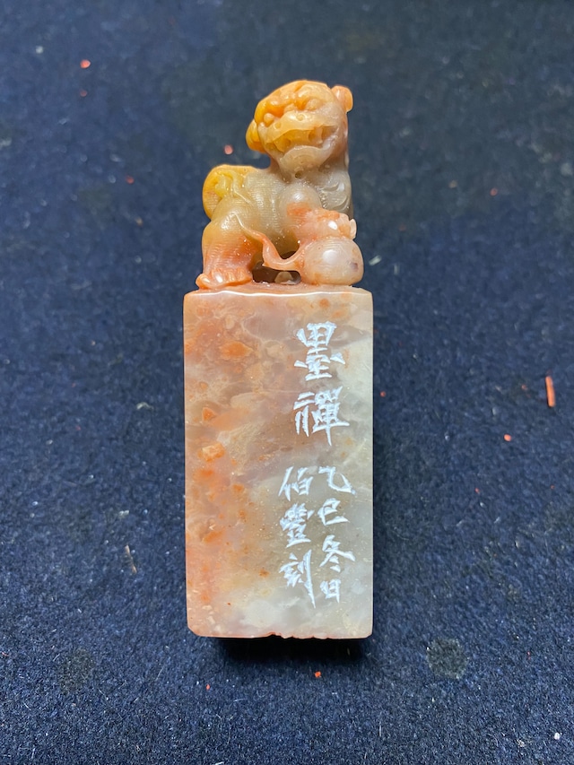 印 文:美意延年 寸 法:2.3×2.3(cm、印面) 制作年:2025年 素 材:平頭巴林石 印篆を用いた白文の吉語印です。 鈕がないぶん側款を凝りました。 シンプルですが品があって飽きの来ない作だと思います。