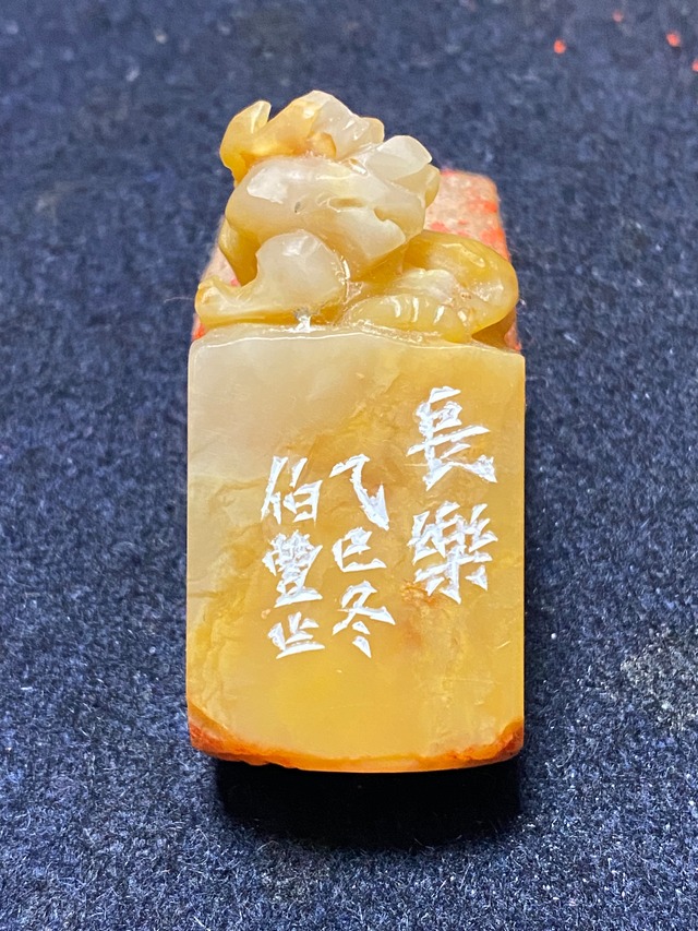印 文:長樂 寸 法:2.3×1.7(cm、印面) 制作年:2025年 素 材:獅子鈕付ラオス石 甲骨文を用いた白文の吉語印です。