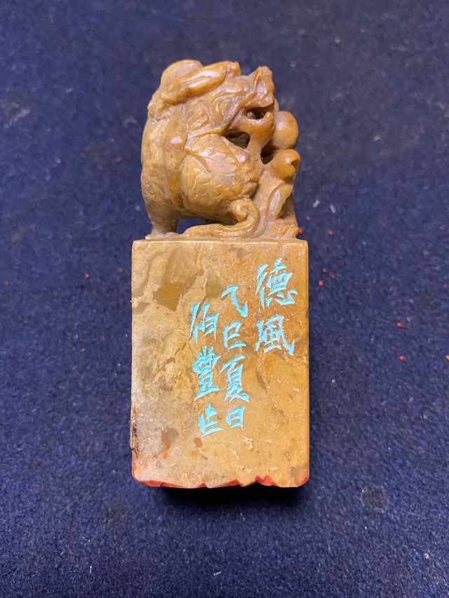 印 文:徳風 寸 法:3.5×3.5(cm、印面) 制作年:2025年 素 材:獅子鈕付寿山石 小篆を用いた白文の成語印です。 徐三庚、二世蘭台などの作風を参考に、鋭い切れ味を意識した作品。
